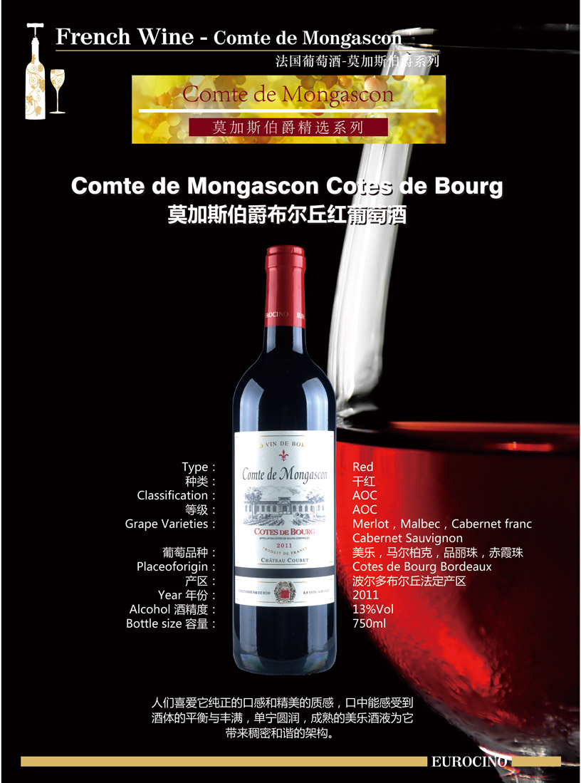 产区:波尔多(BORDEAUX)布尔丘Cotes de Bourg 等级:AOC