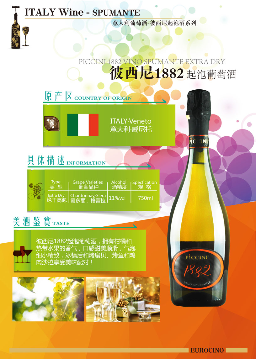 品酒师推荐:彼西尼1882起泡葡萄酒,拥有柑橘和热带水果的香气,口感甜美顺滑,气泡细小精致,冰镇后和烤扇贝、烤鱼和鸡肉沙拉享受美味配对!