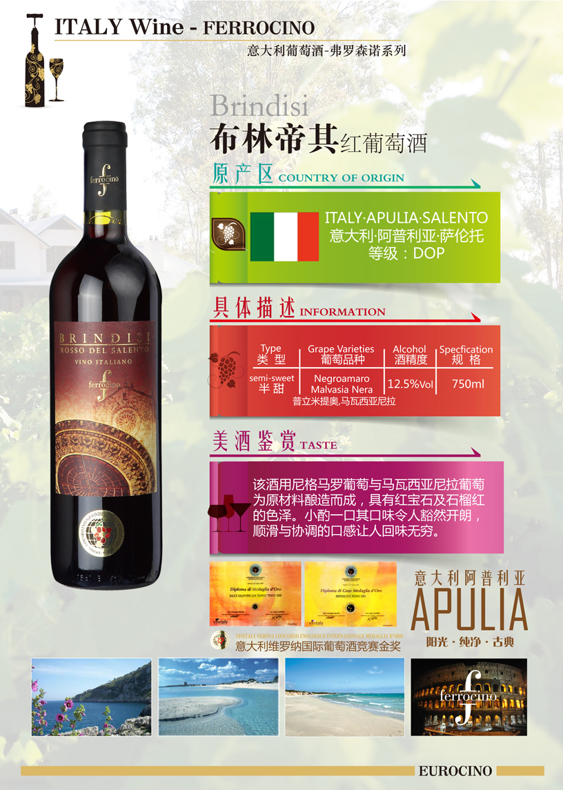 产区:萨伦托 SALENTO 等级:DOP